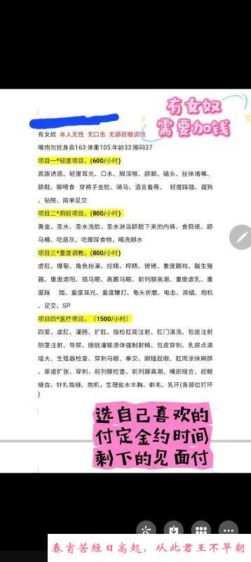 之前去过的很靠谱,有奴女,身高163,体重105,年龄33,脚码37,有轻度重度医疗等项目,具体看图
